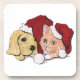 Niedliche Weihnachtsleder Welpe und Orange Tabby Untersetzer