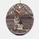 Diese Keramik Weihnachtsschmuck hat einen niedlichen Zeiger mit einer roten Weihnachtsmannmütze , Holz und Licht Hintergrund und eine Nachricht aus dem APS auf der Rückseite. Dieses Ornament ist perfekt für Ihren Baum oder als Geschenk zu geben.