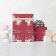 Dieses festliche Weihnachtsverpackungspapier bietet ein niedliches Winterwaldthema auf bordeauxrotem Hintergrund. Ein Bild von zwei kleinen Mäusen wird neben einem Weihnachtsbaum stehend unter farbenfrohen Lichtern und Schneeflocken abgebildet. An der Spitze wird ein "Frohe Weihnachten"-Gruß gedruckt, gefolgt von einem Beispiel für einen Familiennamen. Sie können das Packpapier so gestalten, dass es Ihren eigenen individuelle Name oder Text enthält.