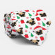 WeihnachtsMopshundezuchtmuster mit Bäumen, Geschenken, Schneeflocken, Weihnachtsmannmützen und Möpse!