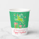 Personalisieren Sie diese festlichen Weihnachtsbecher mit Ihrem eigenen Namen. Spaß Weihnachtsgrün, leuchtend rot und weiß Design eines Rentiers mit einer roten Nase über Boxed Weihnachtsgeschenke. Ideal für Weihnachts-Partys mit Familie, Freunden oder Kunden. © Original art and graphic design von Sarah Trett für www.mylittleeden.com auf Zazzle.