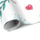 Dieses süsse Weihnachtspapier zeichnet sich durch einen schlichten, weißen Hintergrund mit hübschen blauen Schneeflocken, roten Herzen und botanischen Blattakzenten aus.