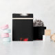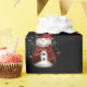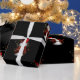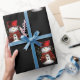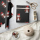Ein niedliches Weihnachtsmuster eines Schneemanns in einem roten Samthut und -jacke, mit goldenen Sternen um ihn herum, wiederholte sich über einen schwarzen Hintergrund, um Ihren Geschenken in dieser Weihnachtszeit eine Touch von Kult und Feiertagsjubiläum hinzuzufügen.