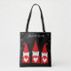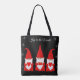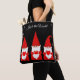 Drei Weihnachtsgnomen und Schneeflocken auf der Black Tote Tasche. Text kann personalisiert sein.