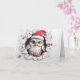Gruß deinen Weihnachtsurlaub mit diesem niedlichen Weihnachtsporträt mit einer niedlichen Weihnachtsschale in einer Weihnachtsmannmütze vorne, blauen Schneeflocken im Hintergrund und einem süßen "Frohen Weihnachten" Gruß in einem schneebedeckten Schriftart im Inneren. Perfekte Grußkarte für Tiere und Naturliebhaber! Nur von Yips N' Howls.