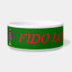 Diese phantastische Hundeschüssel hat einen lustigen Cartoon eines Weihnachtstruthühners mit großen schwarzen Augen, einem kleinen gelben Schnabel und Schwanz Federn klebrig. Die Füße stehen in entgegengesetzter Richtung, wodurch der Truthahn unbeholfen aussieht. Der Truthahn trägt eine rot-weiße Weihnachtsmannmütze und ist zu Weihnachten bereit. Der festliche rote Text ist anpassbar, sodass Sie diese Hundeschale mit dem Namen Ihres Hundes personalisieren können.