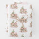 Niedliches Weihnachtsrosa und grüne Umhüllungspapierblätter. Niedlicher Weihnachtsbär, Weihnachtsbaum, Geschenke, Lebkuchen, Schneeflocken und Sterne. Imitate Glitzer Details.