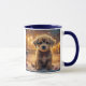 Niedliche Weihnachtswelpen auf einer schneebedeckt Tasse