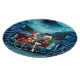 Niedliche Weihnachtswelpen und -elf im Mondlicht