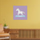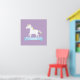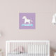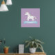 Fügen Sie den Mädchen-Schlafzimmer oder Mädchen-Kinderzimmer eine magische Touch mit diesem Wandplakat hinzu! Es hat ein niedliches, weißes Einhorn mit pastellroter, blauer und gelber Mähne, das auf einem blauen Banner stehend ist und Raum für Personalisierung bietet.