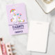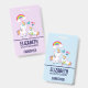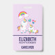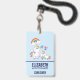 Benennen Sie Abzeichen mit einem weißen Mama-Einhorn mit extravaganten bunten Mane und Schwanz. Ein Baby legt sich neben ihr, mit einem grünen Schnuller im Mund. Ein farbenfroher Regenbogen mit flauschigen Wolken, und einige Sterne und ein Herz zieren dieses süße und bezaubernde Design. Eine fett rosa Kontur, die das Bild umgibt, verleiht ihm ein kinderartiges Doodle-Flair. Perfekt für Pflegeberufe und verwandte Bereiche.