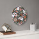 Niedliche, weiße Kaninchen, Vintages Blumenmuster. Große Wanduhr