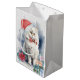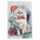 Niedliche weiße Katze in Weihnachtsmannmütze Gesch Mittlere Geschenktüte