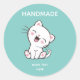 Niedliche weiße Katze auf hellen aquamarinen und handgefertigten Textklebern. Text kann personalisiert sein.