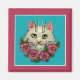 Niedliche weiße Katze, rosa Rosenmagnet Magnet