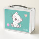 Niedliche weiße Katze und Herz auf Aquamarin Metall Brotdose