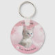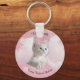 Niedliche weiße Kitte Pink Sky, Schwarzer Name, Ex Schlüsselanhänger