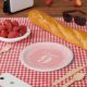 Niedliche, weiße Wildblumen-Muster auf rosa Pappteller