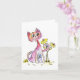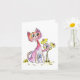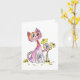 Niedliche weißfarbige rosa Katze mit gelben Blumen Karte