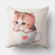 Niedliche weißrosa Katze im Tea Cup (2) Kissen