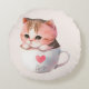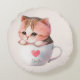 Niedliche weißrosa Katze im Tea Cup (2) Rundes Kissen