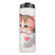 Niedliche weißrosa Katze im Tea Cup (2) Thermosbecher