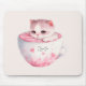 Niedliche weißrosa Katze im Tea Cup (3) Mousepad