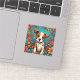 Niedliche Welpe mit Whimsical Folk Art Blume Aufkleber