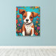 Niedliche Welpe mit Whimsical Folk Art Blume Leinwanddruck