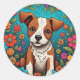 Niedliche Welpe mit Whimsical Folk Art Blume Runder Aufkleber