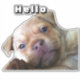 Das ist ein Ausschnitt aus einem Foto eines meiner Hunde, als sie ein Welpe war. Ich fügte das Wort Hello hinzu, um es für einen Telefonaufkleber passend zu machen. So niedlich!