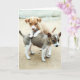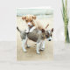 Niedliches Foto von ein paar kleinen Welpen, die am Strand spielen.