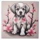 Niedliche Welpen- und Pink-Kirschblossom-Blume Fliese