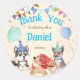 Niedliche Welpen Welpe Party lassen wir uns bedanken, danke Ihnen Aufkleber, sehr niedlich schön für Hunde liebende Menschen. Blaue Farben für einen Jungen zum Geburtstag.