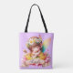 Niedliche whimsical florale süße Träume schlafend Fee mit einer zarten Blume Krone mit einem lila Hintergrund.