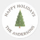 Niedliche kalkfarbene Weihnachtsbaum mit goldenem Stern und Dekorationen. Anpassbare Familienname-Aufkleber. Gute Ferien!