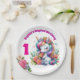 Niedliche Whimsical Floral Unicorn Girly 1. Geburt Pappteller