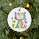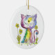 Niedliche Whimsical Happy Cat mit gelben Blumen Keramik Ornament