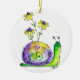 Niedliche Whimsical Happy Snail mit gelben Blumen Keramik Ornament