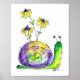 Niedliche Whimsical Happy Snail mit gelben Blumen Poster