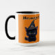 Niedliche whimsical magische Halloween-Schwarzkatz Tasse