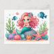 Niedliche Whimsical Mermaid und Fish Friends Szene Postkarte