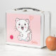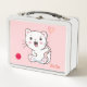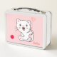 Niedliche White Cat & Heart Ballon auf Light Pink Metall Brotdose