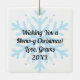 Personalisierte Weihnachtsschmuck. Hübsche ai generierte Winterszene mit einem süß-weißen, flauschigen Kätzchen, das im Schnee spielt.
