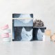 Umhüllungspapier mit einem bezaubernden Foto eines weißen kurz-haarigen Kätzchens mit hellblauen Augen. Steht in die Ferne. Paws kreuzen in typischer Kätzchenmode.