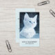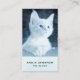Visitenkarten mit einem bezaubernden Foto eines weißen kurz-haarigen Kätzchens mit hellblauen Augen. Steht in die Ferne.