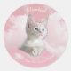 Niedliche White Kitten Pink Sky Wolken Name, Extra Runder Aufkleber
