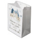 Rustikale Babydusche Geschenktasche mit niedlichen arktischen Wölfen, Bäumen und Schneeflocken. Ideal für eine Babydusche im Winter. Die Wörter können geändert werden, um Ihre eigenen Angaben oder Anforderungen Anzug