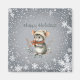 Eine niedliche graue Maus, die in einer Kappe und einem Schal aus Strumpf für den Winter gekleidet ist, hält Beeren und wünscht Ihnen "Happy Holidays". Es ist von einem weißen Schneeflocken-Design umgeben. Der Gruß kann leicht auf alles geändert werden, was Sie bevorzugen.