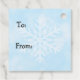 Niedlicher personalisierter Weihnachtspinguin und Schneeflocken mit blauen Geschenketiketten.
